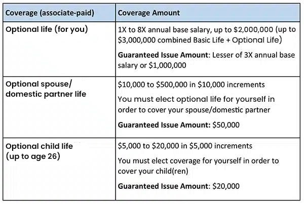 You can purchase optional life insurance for yourself and your eligible family members in the amounts shown below. If you and your spouse or domestic partner are both employed by an Albertsons-affiliated employer, you may cover yourself under optional life or your spouse or domestic partner may cover you under optional spouse/domestic partner life. Associates cannot be covered as both an associate and a spouse or domestic partner.